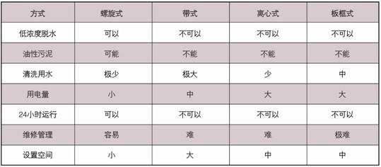 在處理量相同的前提下,螺旋式運(yùn)行成本為7.99元/h,離心式為24.6元/h,帶式為27.6元/h,相對而言,螺旋式運(yùn)行成本為離心式的1/3,是帶式的1/4左右,若以一天8小時工作時間,工作一個月計(jì)算著得出: