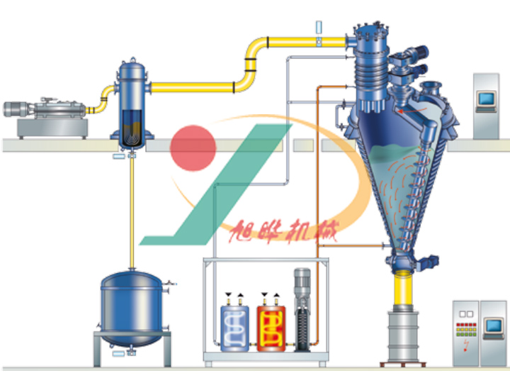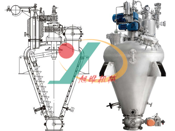 無(wú)錫旭曄機(jī)械開發(fā)的真空單錐干燥機(jī)是一種集減壓蒸餾、粉碎、混粉、干燥為一體的高效多功能全密閉立式真空干燥設(shè)備,全密閉立式真空螺帶干燥機(jī)的干燥效率是同等規(guī)格雙錐回轉(zhuǎn)真空干燥機(jī)、真空箱式烘3~5倍。真空單錐干燥機(jī)結(jié)合特殊干燥工藝,能適應(yīng)粘度大、熱穿透性差,易滾球、易抱團(tuán)成塊的物料的干燥。