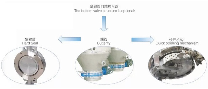 濾餅吹干后,啟動振動器,濾葉片上的濾餅通過底部蝶閥自動落下。如果濾餅吹干過程操作的很好,開啟振動器10S內(nèi)即可落下全部濾餅。在過濾機底部安裝一個絞龍,有利于輸送濾餅。