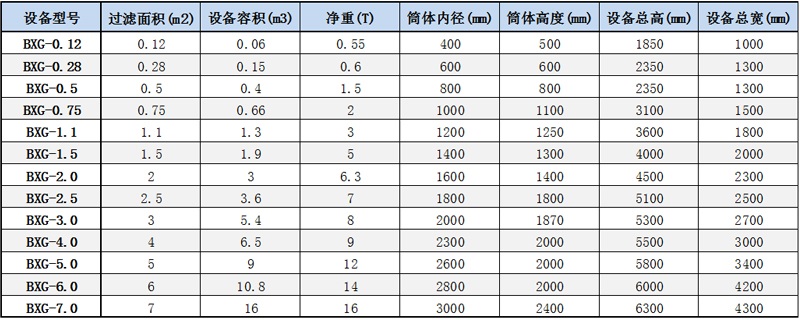 平板式過濾洗滌干燥三合一 技術參數(shù)表